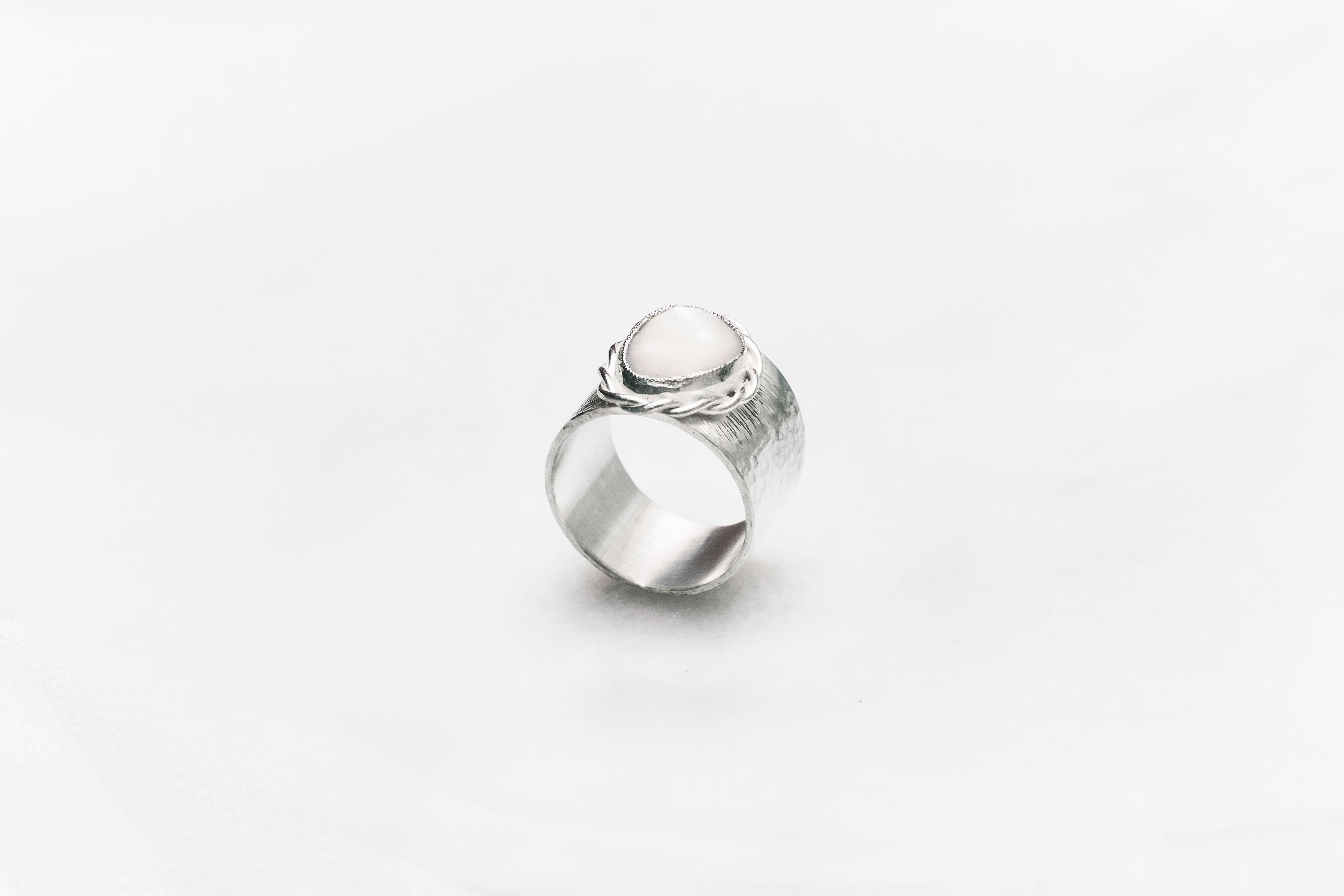 このリングには自然な輝きを持つ白蝶貝を選び
